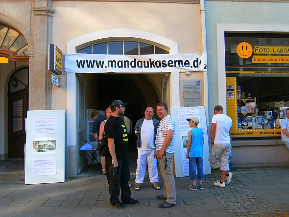 Einige Freunde des Vereins starteten unseren Auftakt zur Unterschriftenaktion für den Erhalt der Mandaukaserne.